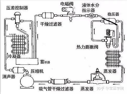 截流降压:高压常温的制冷剂流过膨胀阀后,就变为低压、低温的制冷剂液体。